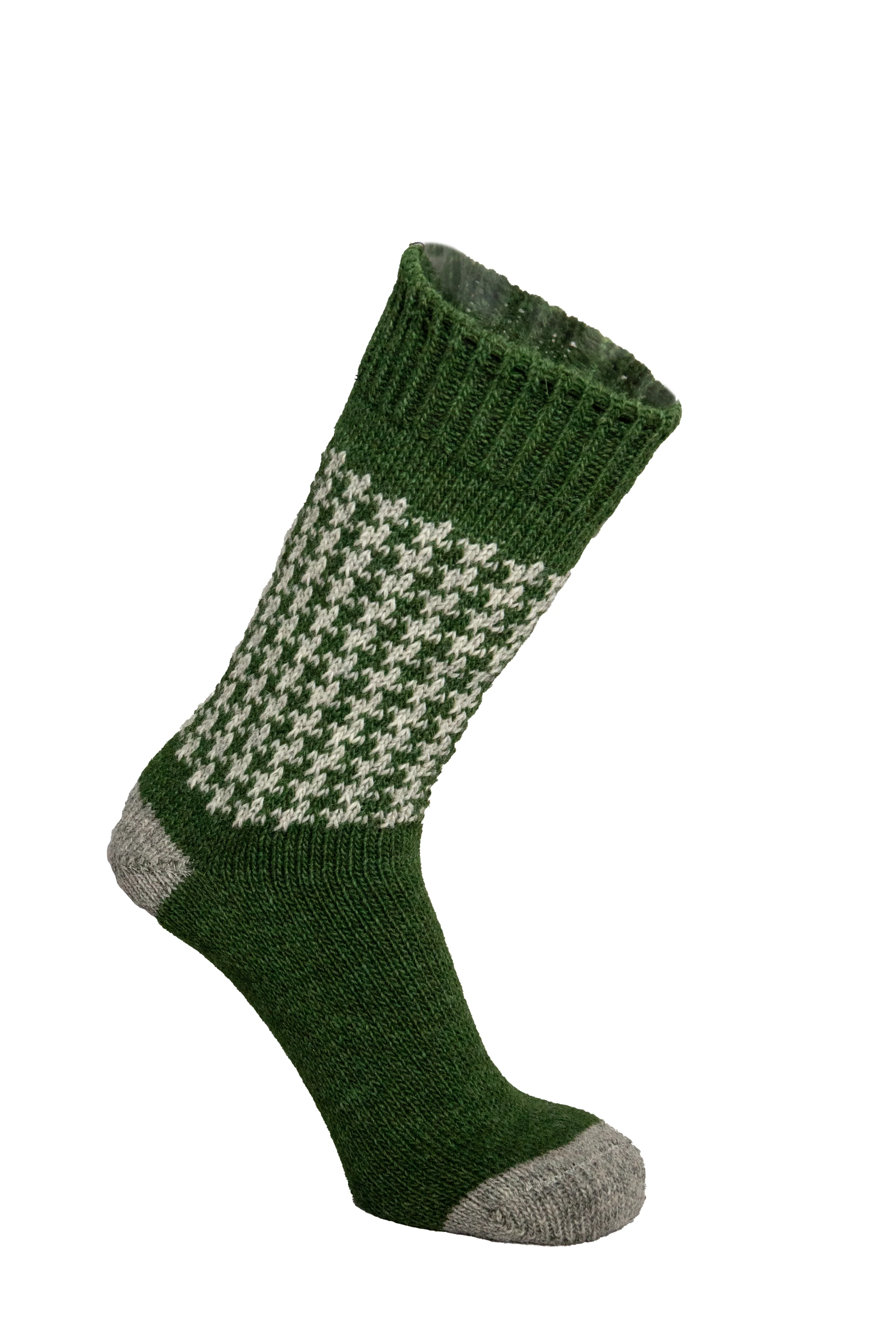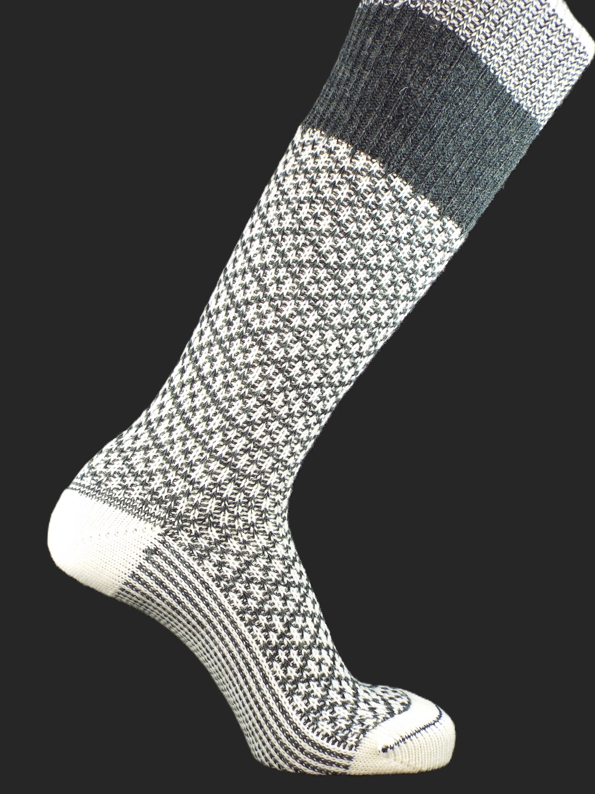 La macchina BUSI® 500 può produrre calze con disegni jacquard in due colori su una base di maglia liscia o costa
