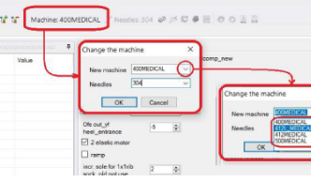 Per semplificare la preparazione dei disegni per calze tecniche, che richiedono la programmazione grafica di più funzioni (ad esempio la selezione dell’elastico e della spugna selezionata), il programma utilizza diversi layer per le varie funzioni.