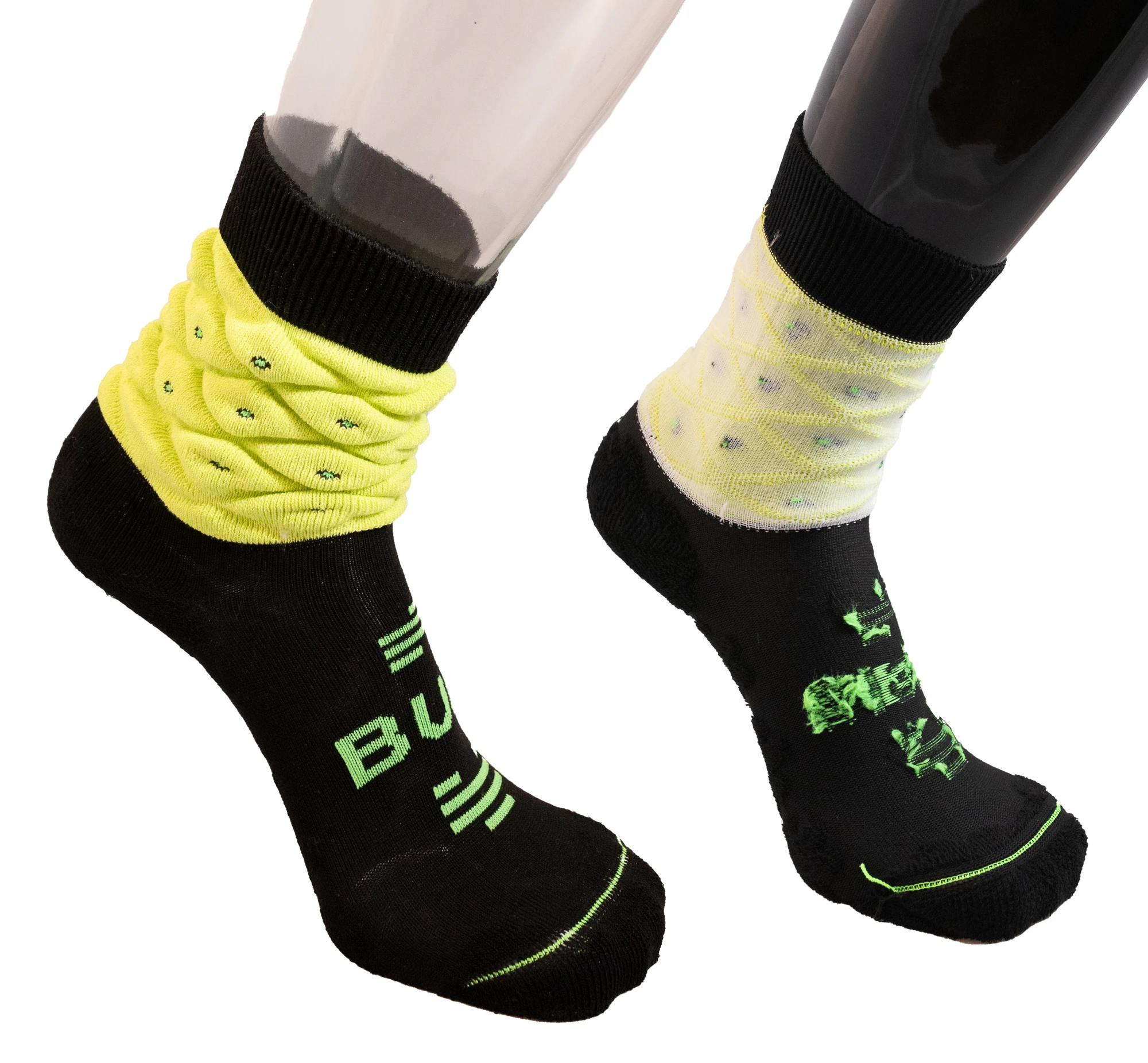 La doppia struttura può estendersi per tutta la calza, ad esclusione del tallone e della punta